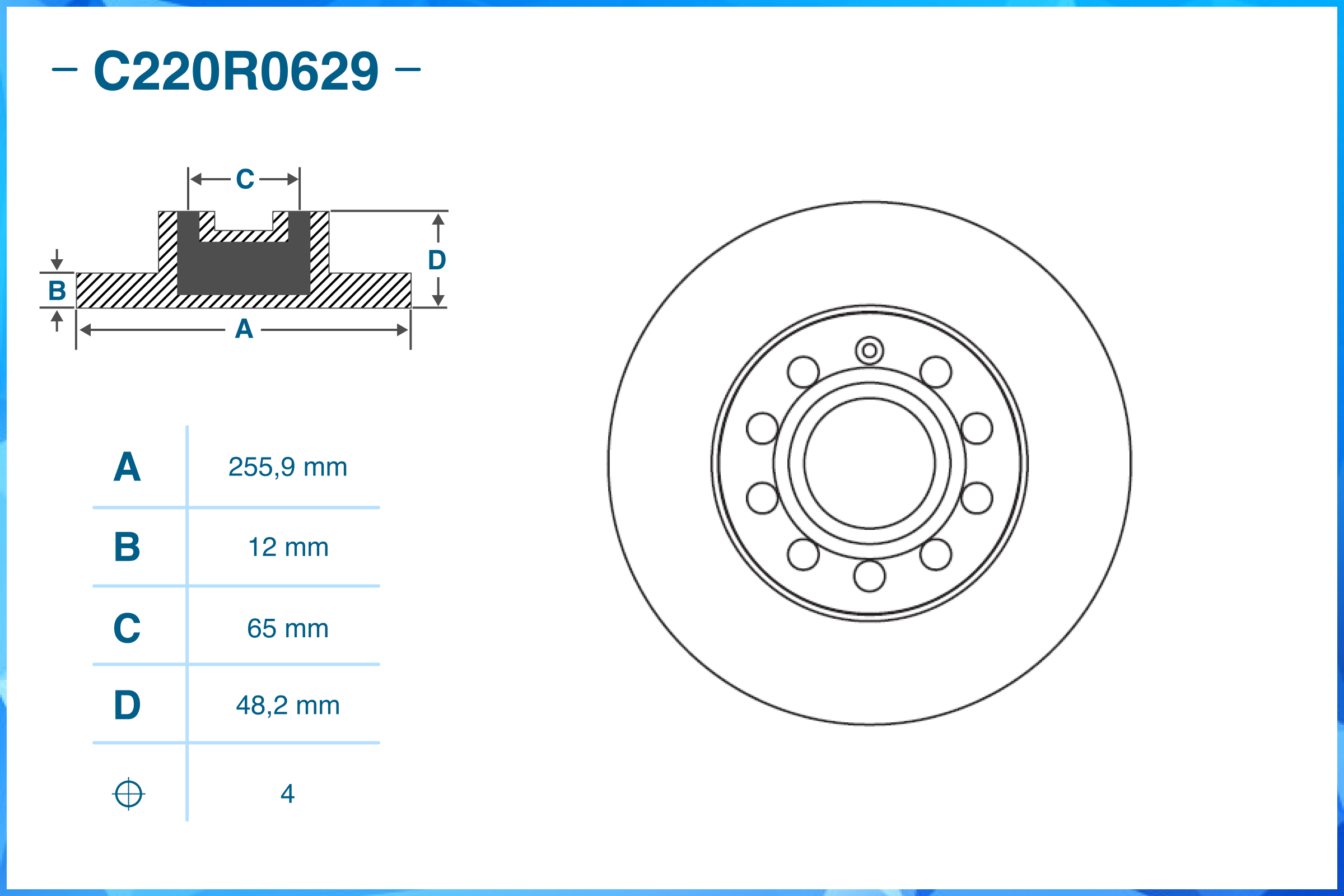 | Наименование | Тормозной диск задний C220R0629 |