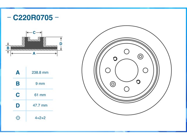 | Наименование | Тормозной диск задний C220R0705 |