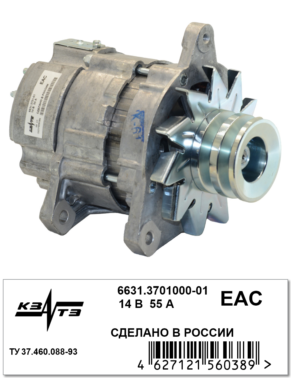 6631370100001 KZATE Генератор для а/м УАЗ 402 (55А) (6631.3701-01) "КЗАТЭ"