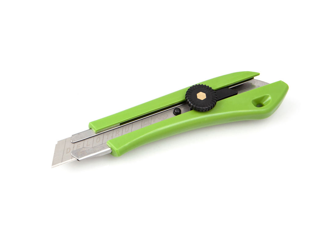 | Наименование | Нож с сегментным лезвием 18 мм, метал направляющая, винтовой фиксатор лезвия,ABS |