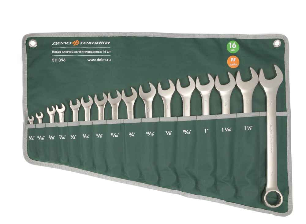 511896 DELO TEHNICI Набор ключей комбинир дюймовых 16 пр с 1/4" до 1-1/4" /ДЕЛО ТЕХНИКИ/