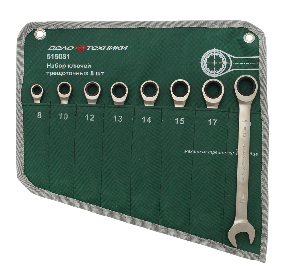 515081 DELO TEHNICI Набор ключей комб.трещоточных 8 шт.(8,10,12,13,14,15,17,19мм) сумка (ДТ) 515081