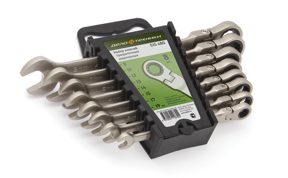 515480 DELO TEHNICI набор ключей комбинированных! трещ. шарнирных 8шт. (8,10,12,13,14,15,17,19) плас