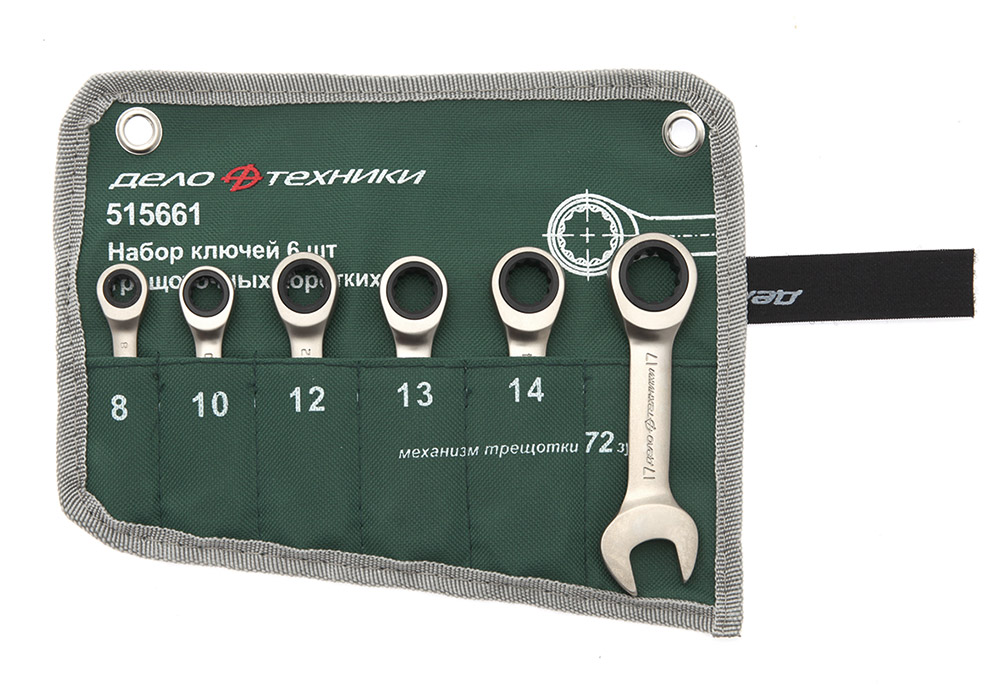 515661 DELO TEHNICI Набор ключей комбинир трещеточных коротких 6пр (8-17мм) планшет тетрон /ДЕЛО ТЕХ
