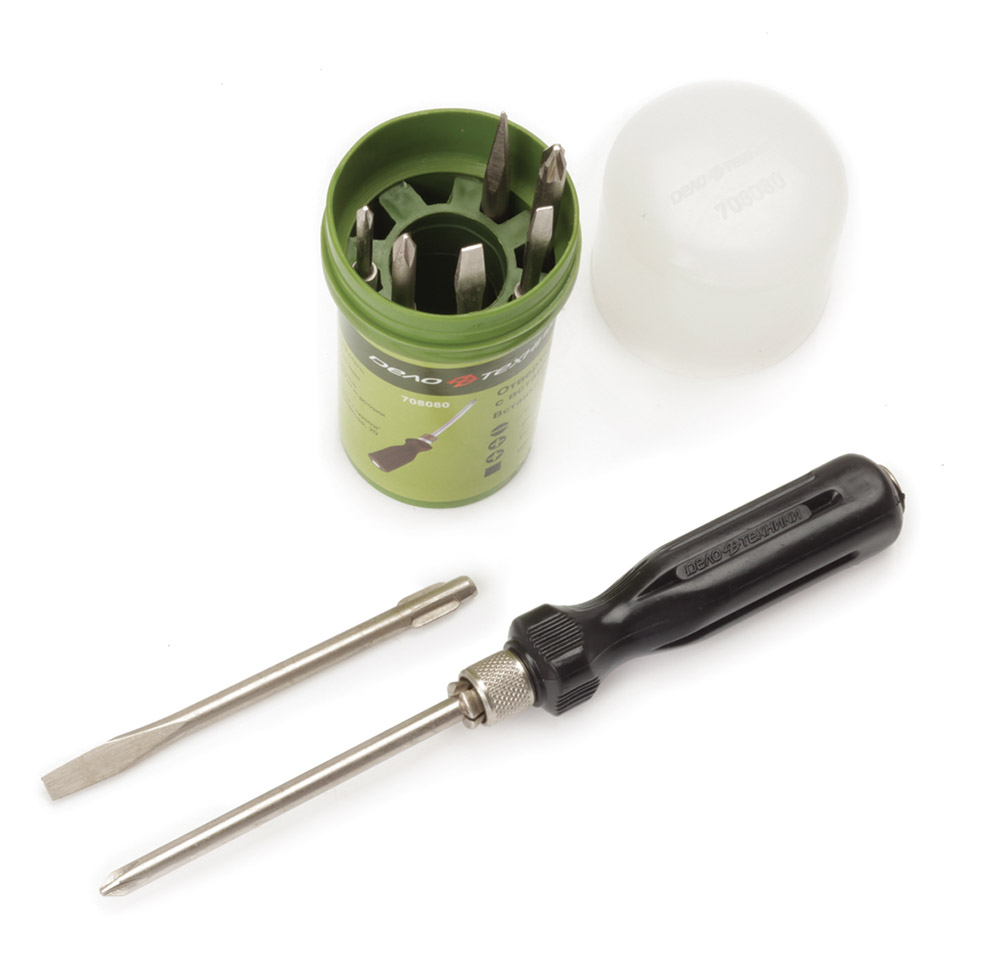 708080 DELO TEHNICI Отвертка цанговая с переставными жалами 8 предметов (SL 3,5,6мм,PH0,PH1,PH2,PZ2,