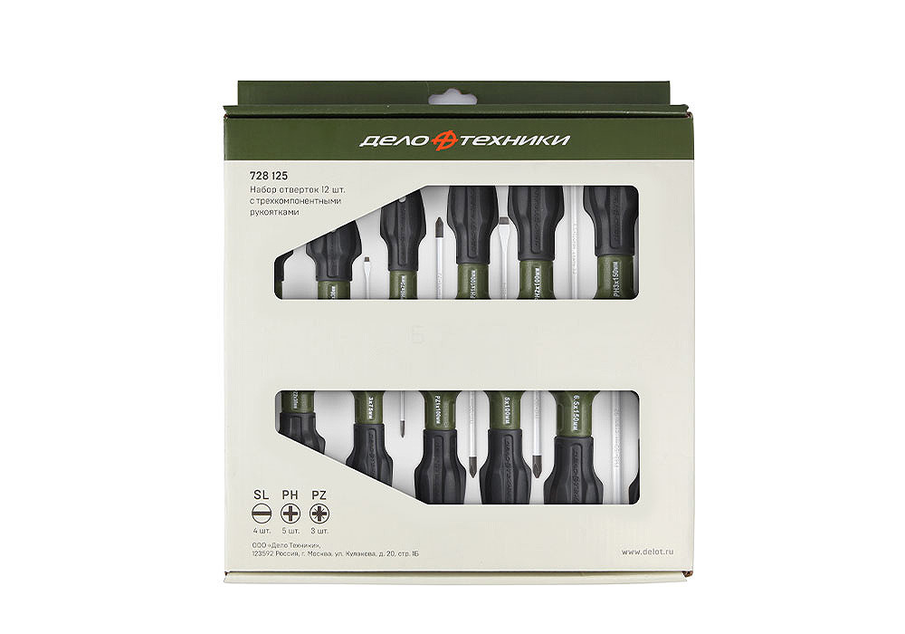728125 DELO TEHNICI Набор отверток 12 пр (SL, PH, PZ) /ДЕЛО ТЕХНИКИ/
