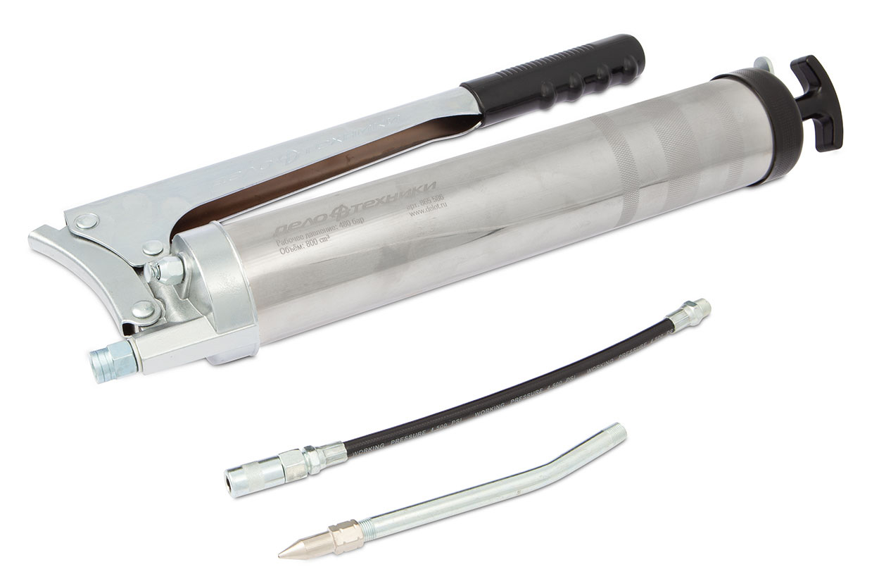 865586 DELO TEHNICI Шприц рыч.-плун. 800мл (трубка,наконечник) рабочее давл 474 атм нержавейка /Дело