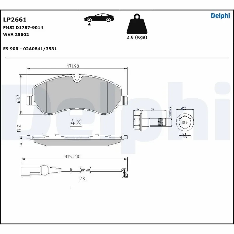 LP2661 DELPHI Колодки передние FORD TRANSIT CUSTOM 2.2TDCi 12/12- LP2661