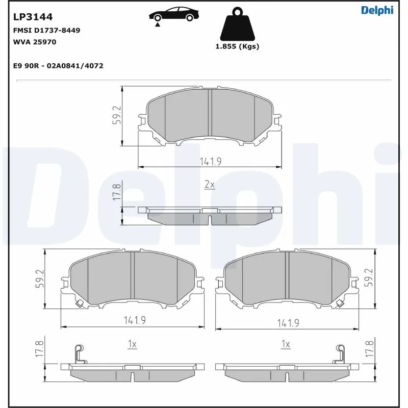 LP3144 DELPHI LP3144 колодки тормозные диск. пер. !\ Nissan Qashqai 1.6/2.0/1.5dCi/1.6dCi 13>