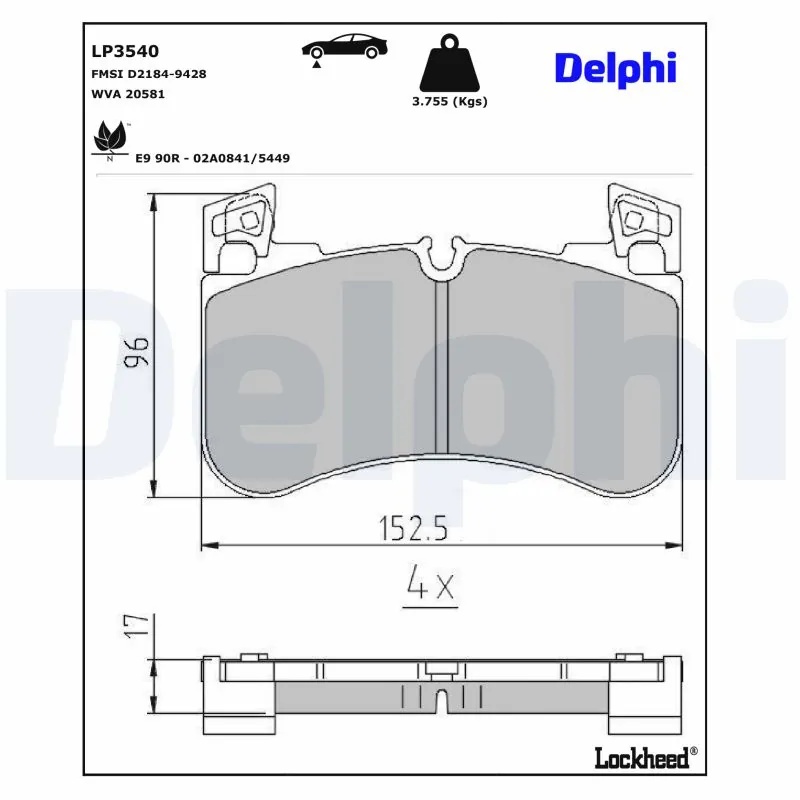 LP3540 DELPHI Колодки тормозные LAND ROVER DEFENDER Station Wagon (L663), DISCOVERY V (L462) L