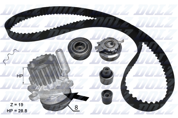 KD100 DOLZ Комплект ГРМ с насосом VW CRAFTER, TIGUAN 2.0TDI KD100