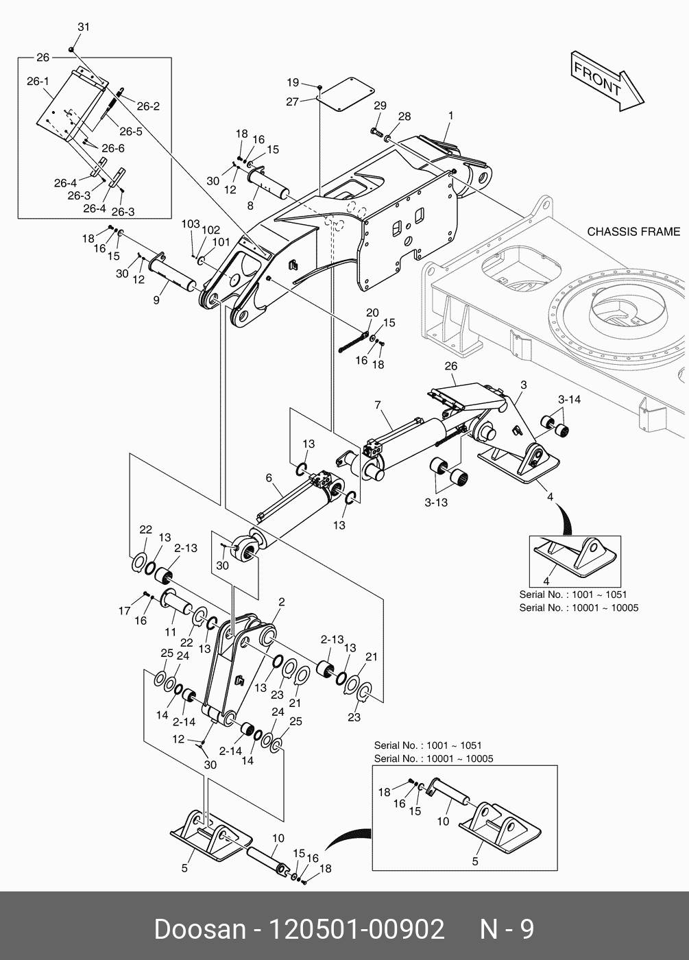 120501-00902 DOOSAN 120501-00902 Палец аутригера верхний DX190WA
