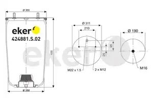 ET424881S02 EKER Пневморессора BPW (без стакана,2шп.M12,1 отв.штуц.M22х1.5мм) EKER