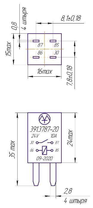 | Наименование | Реле электромагнитное 24V 4-х контактное 10А замыкающее ЭНЕРГОМАШ |