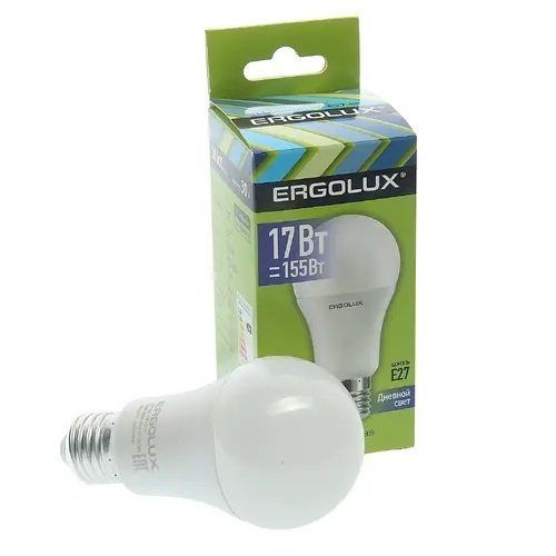 | Наименование | Лампа светодиодная E27 A60 17W (155W) 220V дневной ERGOLUX |