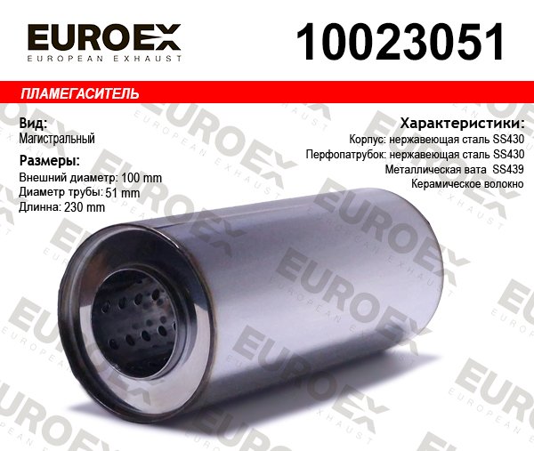 10023051 EUROEX пламегаситель магистральный нерж. !100x230x51\
