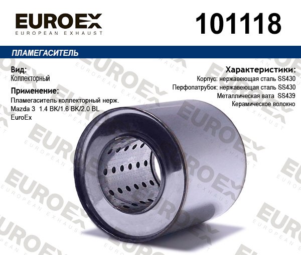 101118 EUROEX пламегас.коллект.нерж.!\ Mazda 3 1.4 BK/1.6 BK/2.0 BL EuroEx
