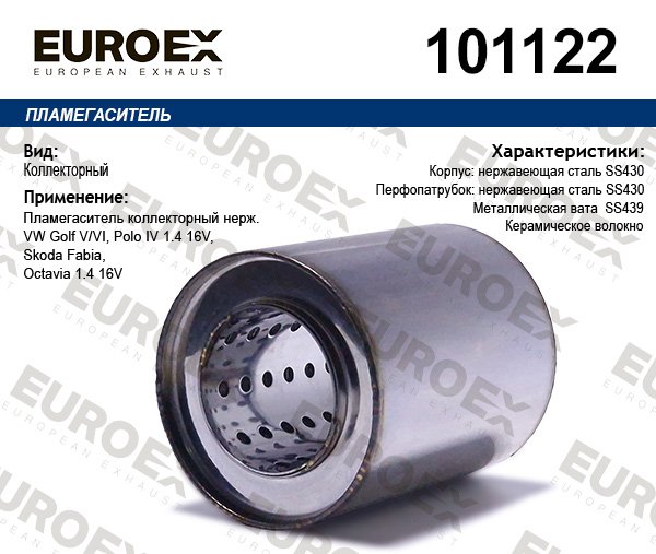 101122 EUROEX пламегаситель коллекторный! нержавейка\ VW Golf V/VI/ Polo IV, Skoda Fabia/Octav