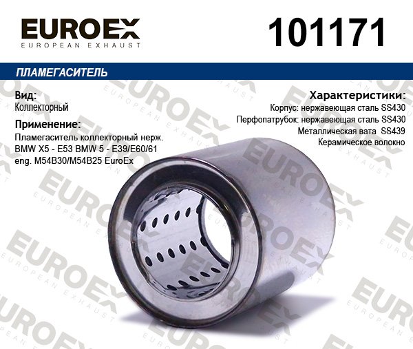 101171 EUROEX пламегаситель коллекторный нерж.!\ BMW X5 E53/E39/E60/61