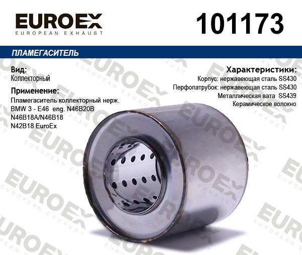 101173 EUROEX пламегаситель коллекторный нерж.!\ BMW E46 N46B20B/N46B18A/N46B18/N42B18