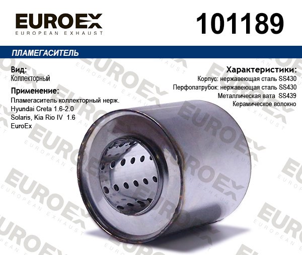 101189 EUROEX пламегаситель коллекторный нерж.!\ Hyundai Creta 1.6-2.0 /Solaris, Kia Rio IV 1.