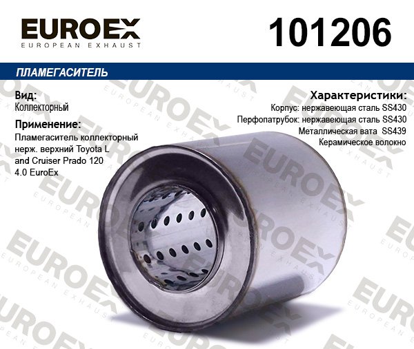 101206 EUROEX пламегаситель коллекторный нерж. верхний!\ Toyota Land Cruiser Prado 120 4.0