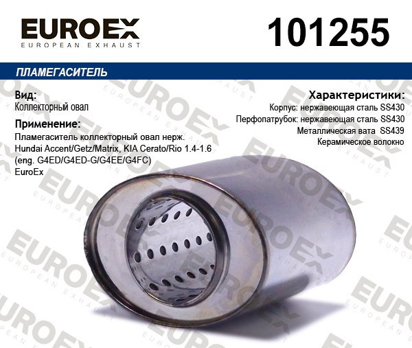 101255 EUROEX пламегаситель коллекторный овал нерж.!\ Hundai Accent/Getz/Matrix, KIA Cerato/Ri