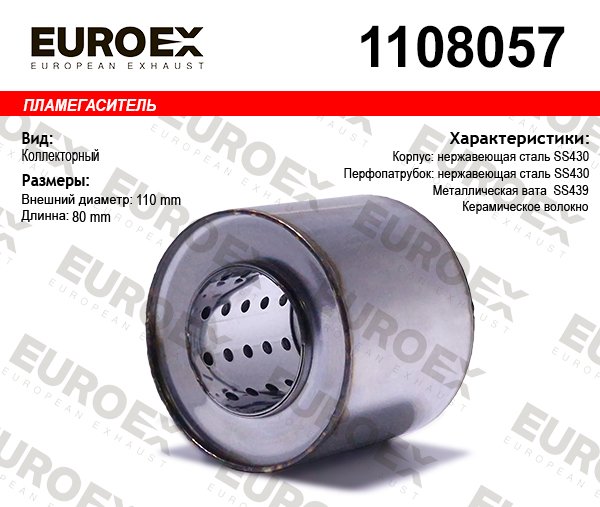 1108057 EUROEX пламегаситель коллект!110x80x57\ нерж. (диаметр трубы 57мм, общая длина 80мм диа