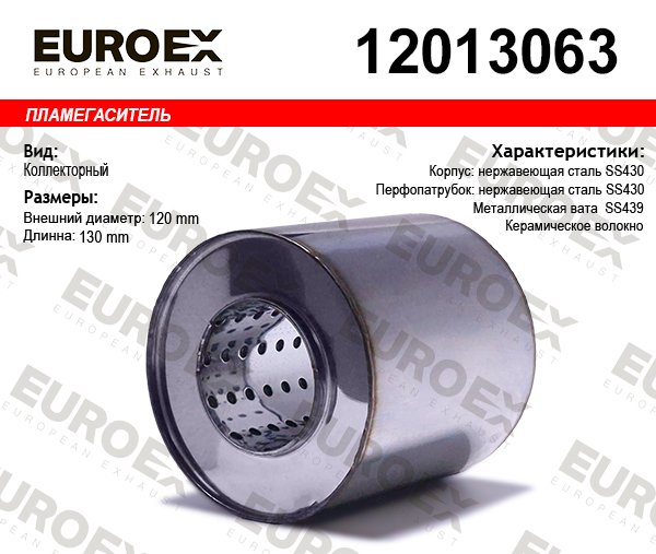 12013063 EUROEX пламегас.коллект.!120x130x63\ нерж. (диаметр трубы 63мм, общая длина 130мм диаме