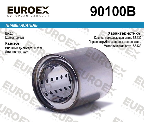 90100B EUROEX пламегаситель коллект. 90x100x57! диаметр трубы 57мм, общая длина 100мм диаметр