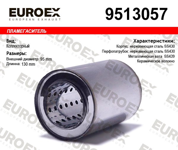 9513057 EUROEX пламегас.коллект.!95x130x57 нерж.\ (диам.трубы 57мм,общая длина 130мм диаметр бо