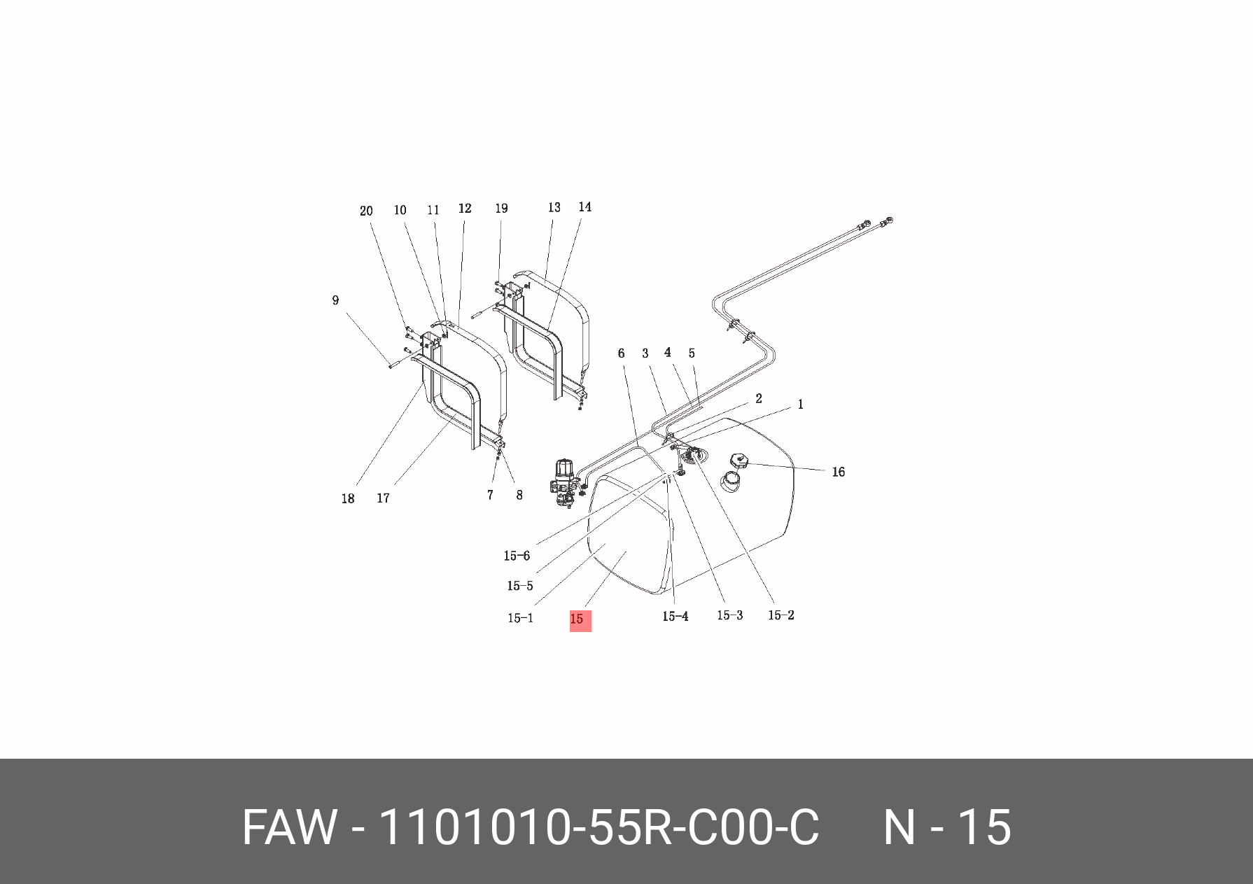 1101010-55R-C00-C FAW Бак топливный 400 литров 6х6 (с датчиком уровня топлива + крышка) J6
