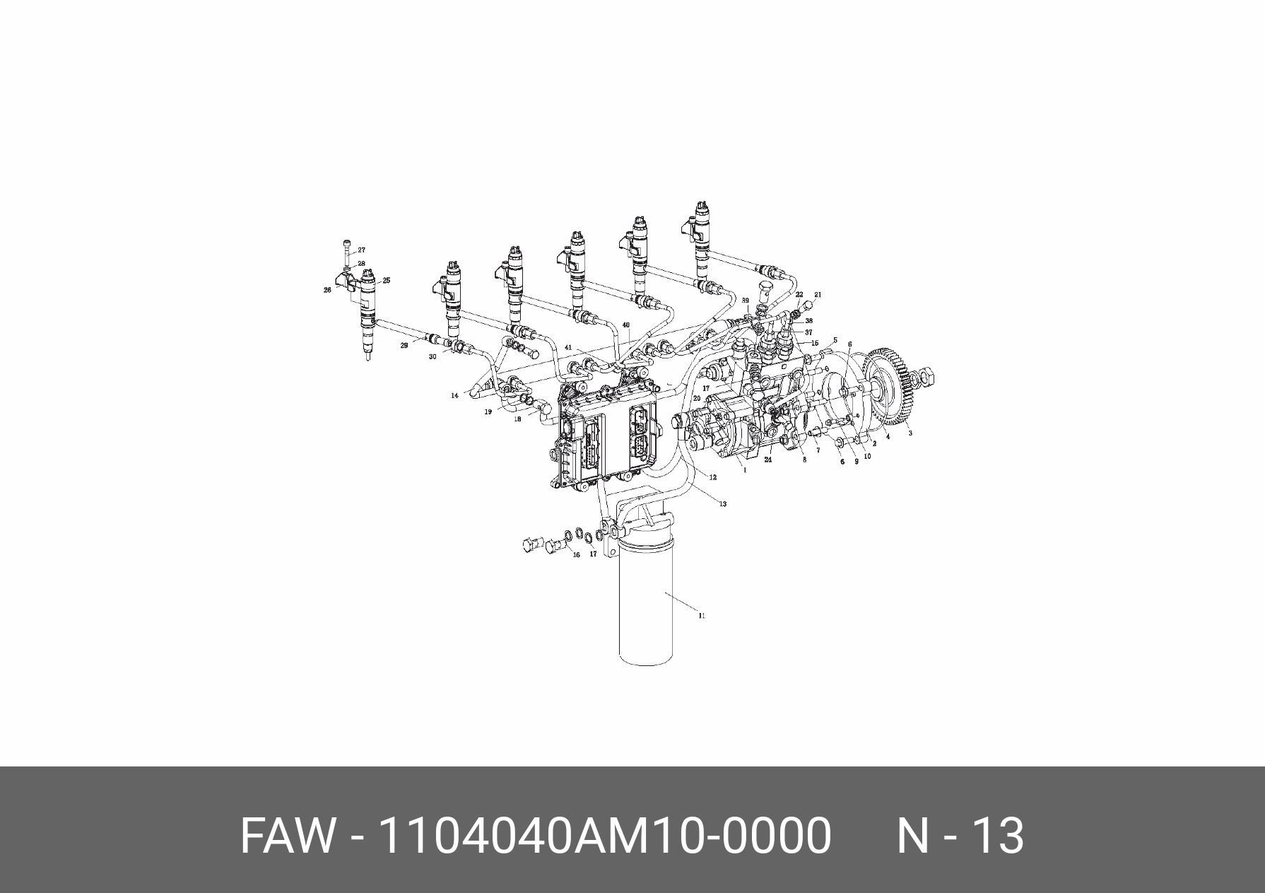 1104040AM100000 FAW Трубка топливная FAW дв.CA6DM от фильтра к ТНВД OE
