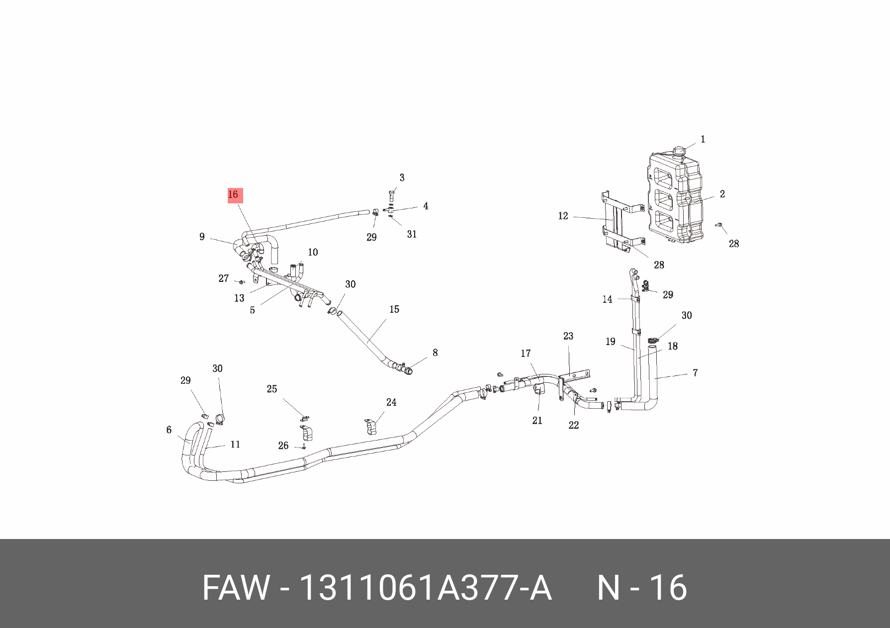 1311061A377A FAW Трубка FAW J6,3250 бачка расширительного отвода воздуха OE