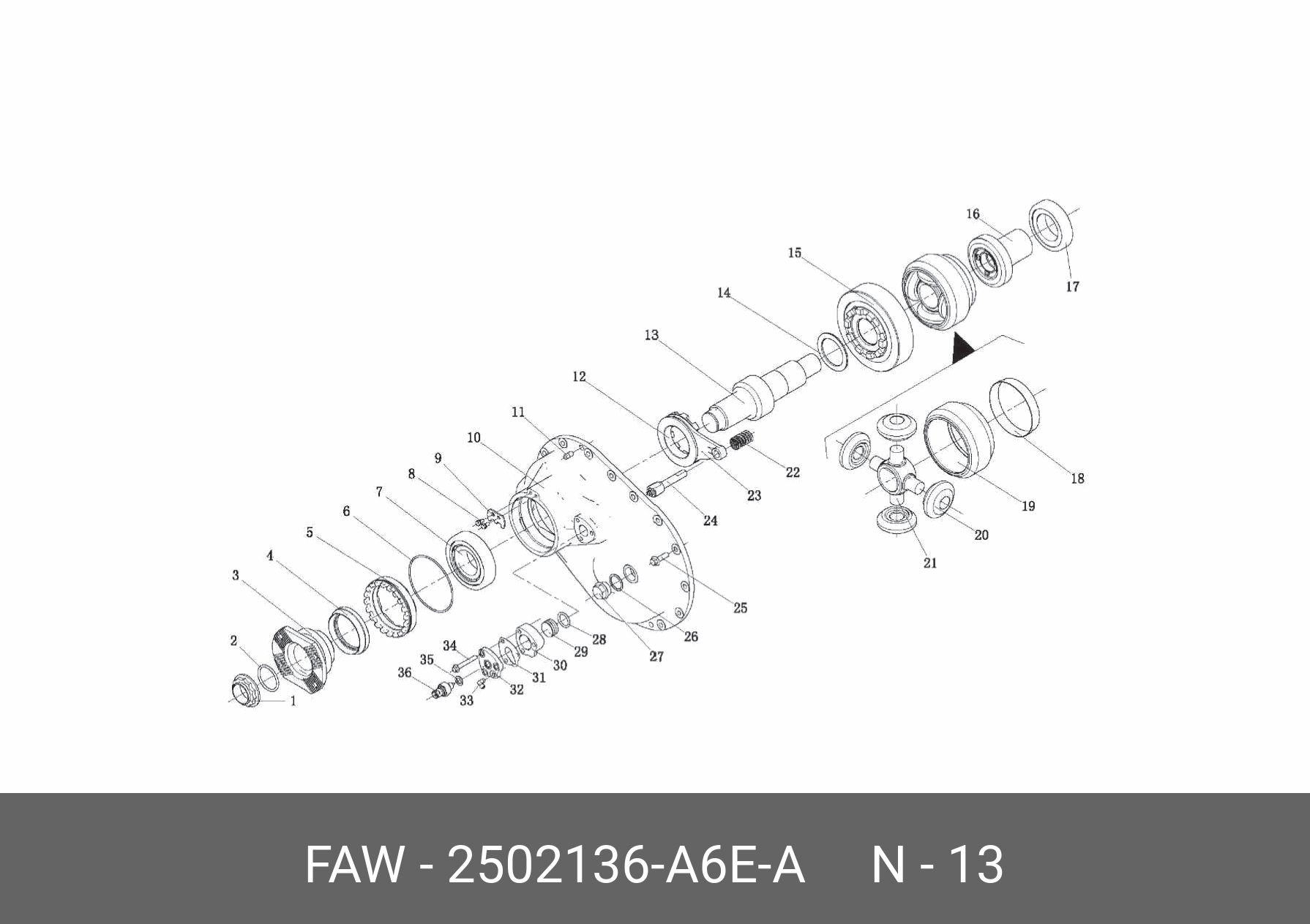 2502136-A6E-A FAW Вал FAW J6,3310,E5 ведущей шестерни среднего моста OE
