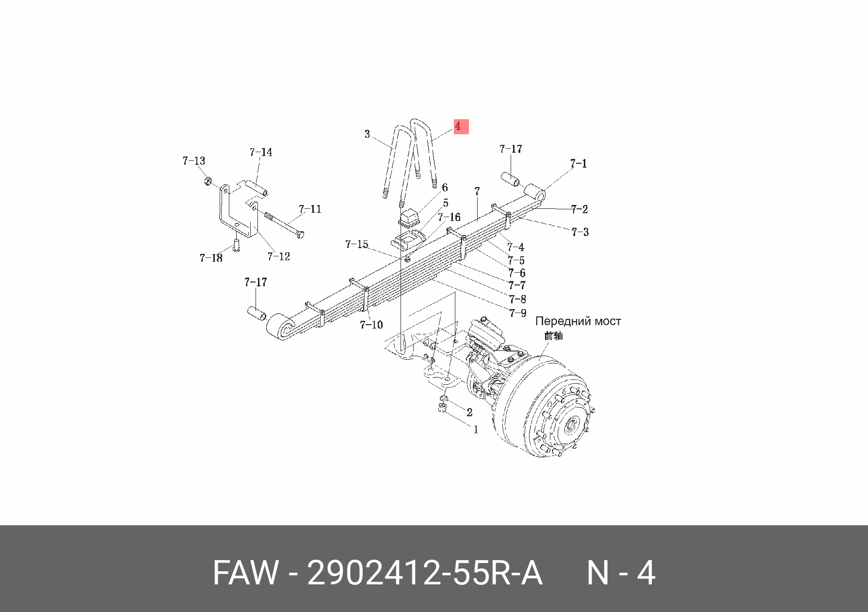 | Наименование | Стремянка FAW 3250 (6х6) рессоры передней OE |