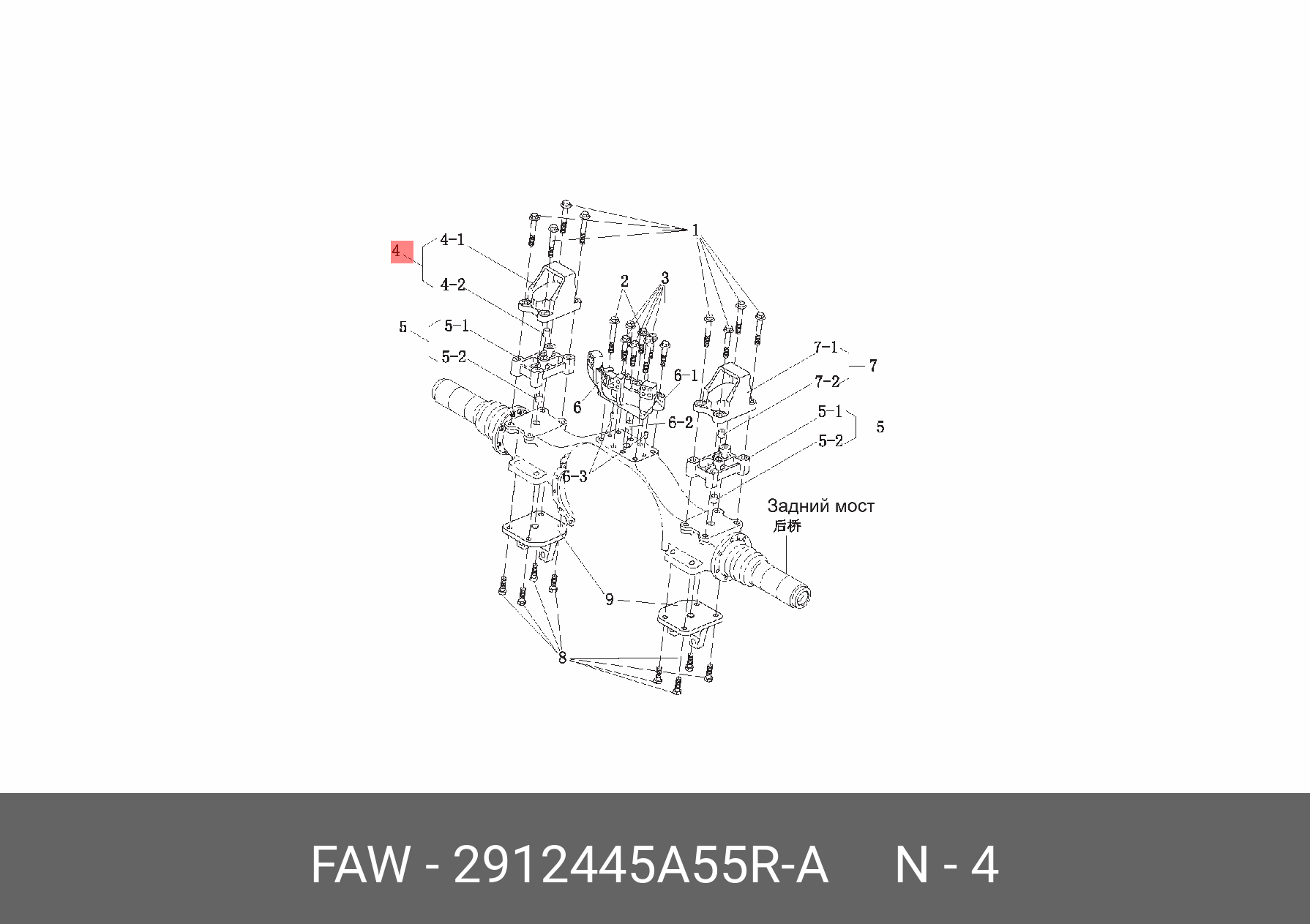 2912445A55R-A FAW Опора задней рессоры (6*6) задн.прав., средн.лев.