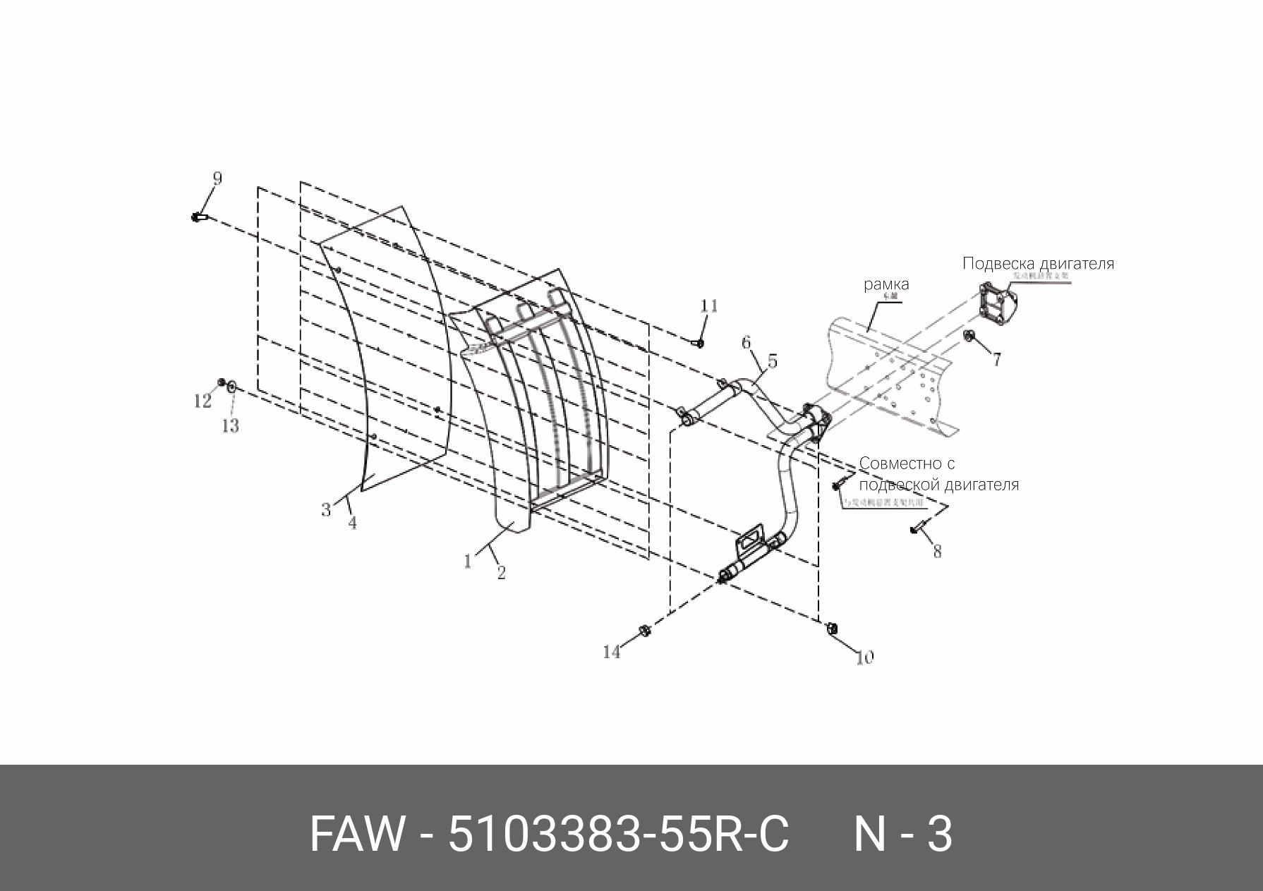 510338355RC FAW Брызговик FAW 3250 (6х6) крыла передний левый (резиновый) OE