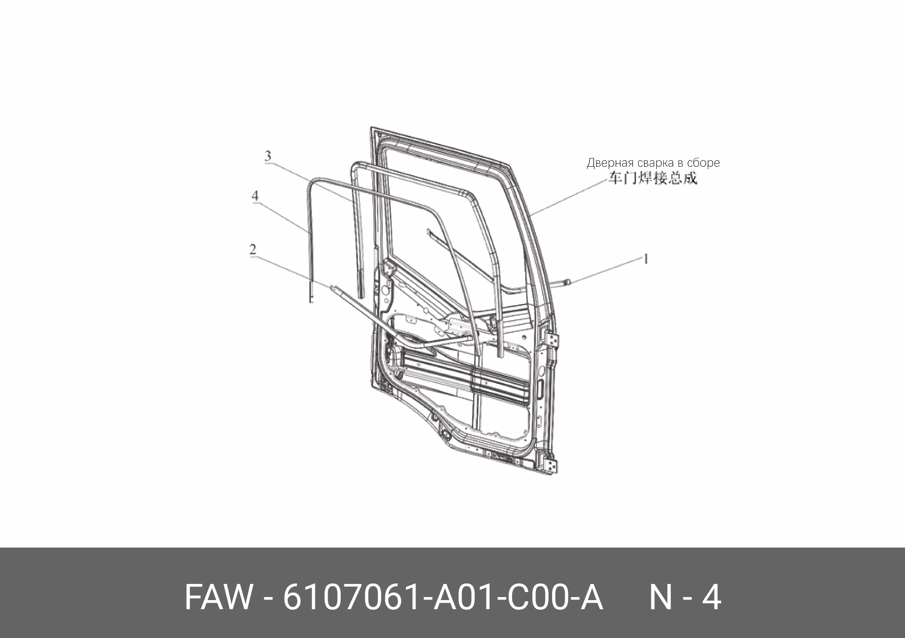 | Наименование | Уплотнитель двери FAW J6,4180 передней левой OE |
