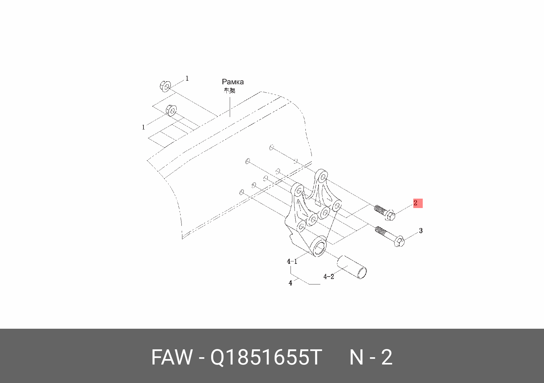 Q1851655T FAW Болт FAW J6 кронштейна рессоры OE