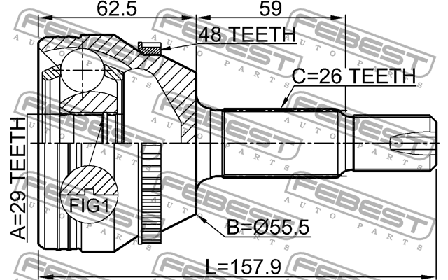 0110-ZZE132A48 FEBEST Шрус наружный 29x55x26
