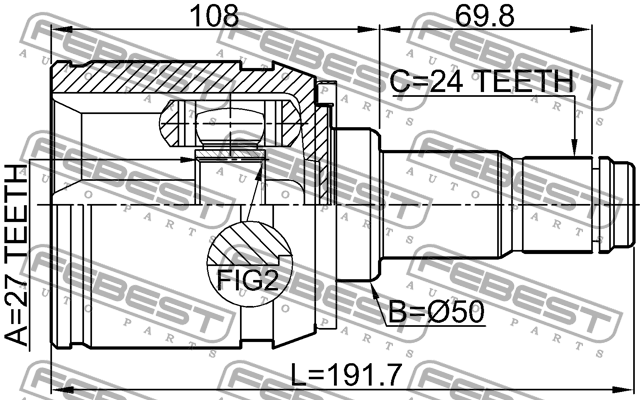 0111GSL20LH FEBEST ШРУС внутр правый TOYOTA SIENNA GSL2#,MCL2# 2003.01-2009.12 0111-GSL20LH