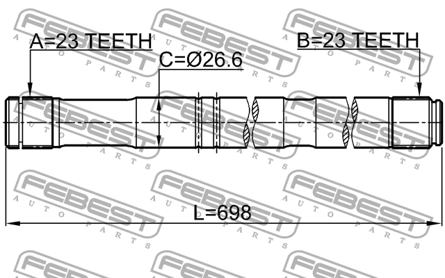 0112-ZZT251RH FEBEST Полуось правая 23x698x23