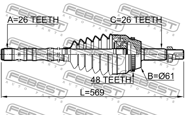 0114-ACV40L26A48 FEBEST ШРУС внешний с валом 26х61,3х26 TOYOTA CAMRY ACV40/GSV40 06-11 0114-ACV40L26A48