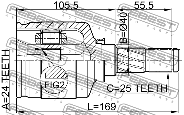 0211-P12QR20LH FEBEST ШРУС внутренний левый к-кт! 24x40x25\ Nissan Primera 01-07