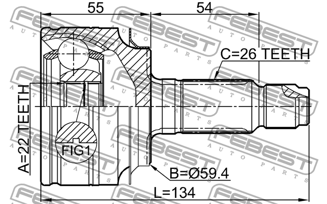 0310-CIVAT FEBEST ШРУС наружный 22X60X26 HONDA CIVIC FB 4D 2012-2015 0310-CIVAT