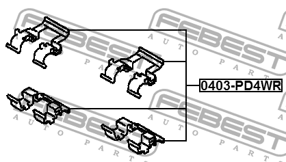 0403-PD4WR FEBEST Комплект MITSUBISHI Pajero (90-99) монтажный колодок тормозных дисковых FEBEST