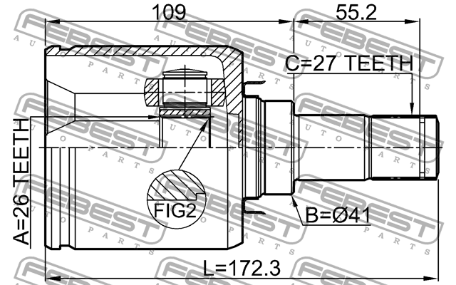 0411-NA4WLH FEBEST ШРУС ВНУТРЕННИЙ ЛЕВЫЙ 26X41X27 подходит для MITSUBISHI GRANDIS NA4W/NA8W 2003-20