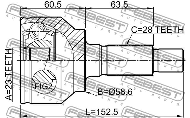 0510-BLAT FEBEST ШРУС наружный 23x58.6x28 0510-BLAT