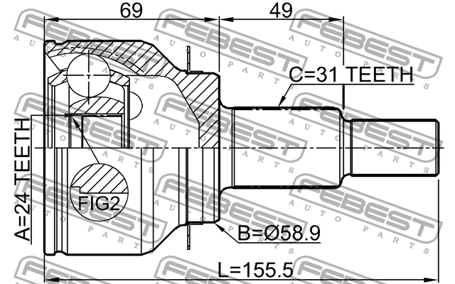 0510-GJAT FEBEST ШРУС внешний 24X59X31 MAZDA CX-5 KE 2011- 0510-GJAT